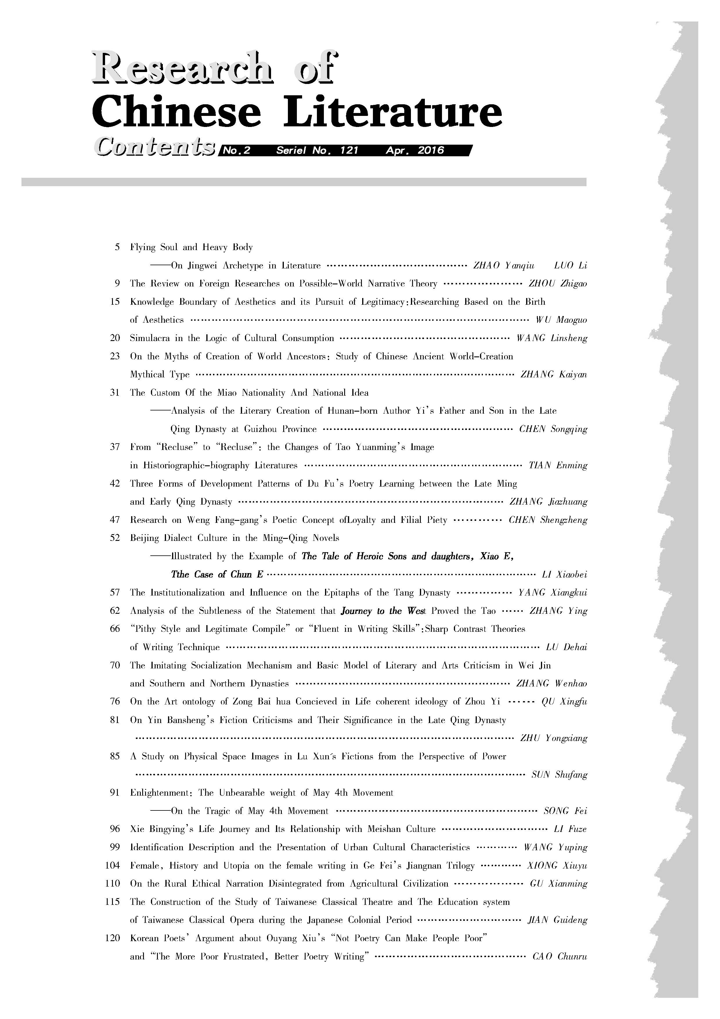 《中国文学研究》2016第二期(总121期)(补)
