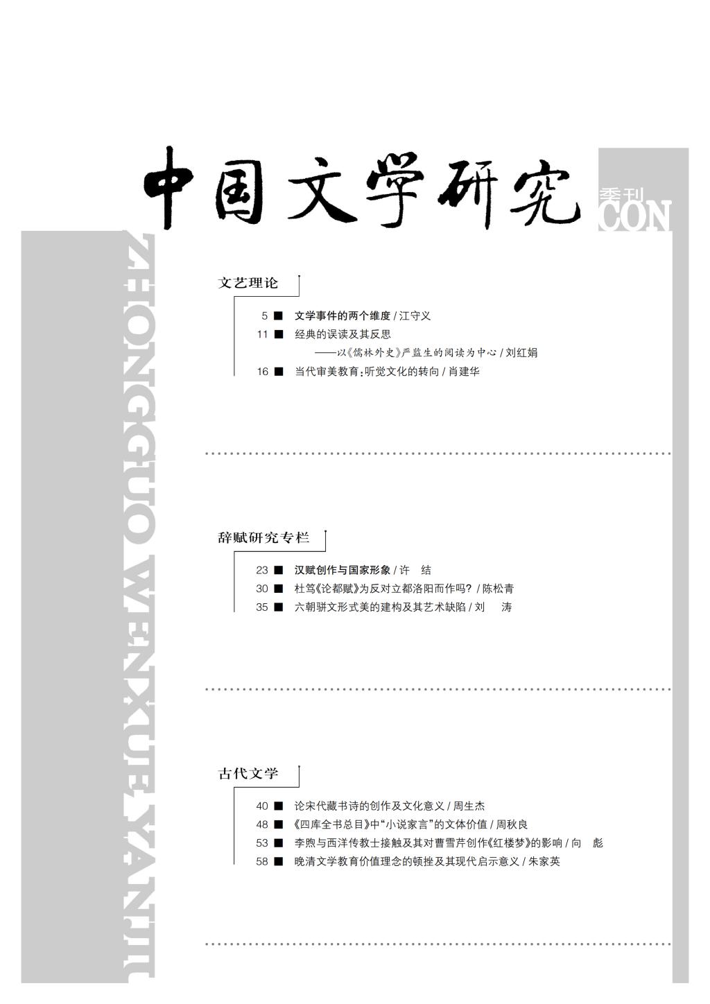 《中国文学研究》2017-3目录