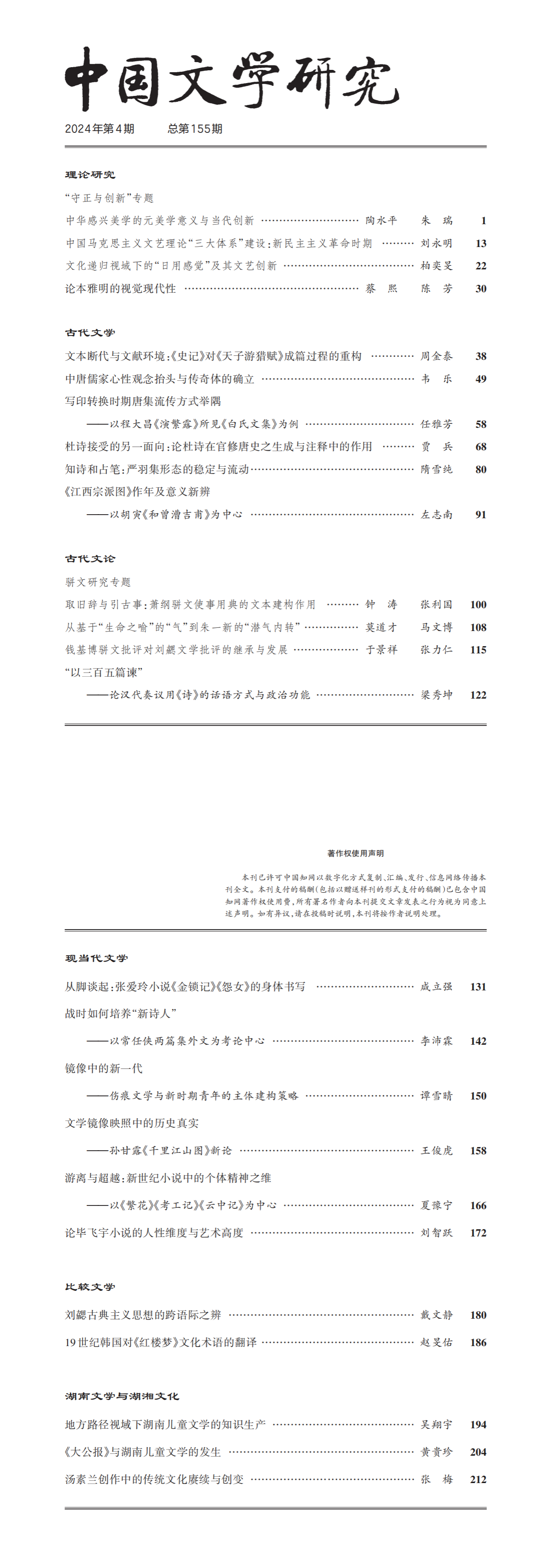 《中国文学研究》2024年第4期总第155期