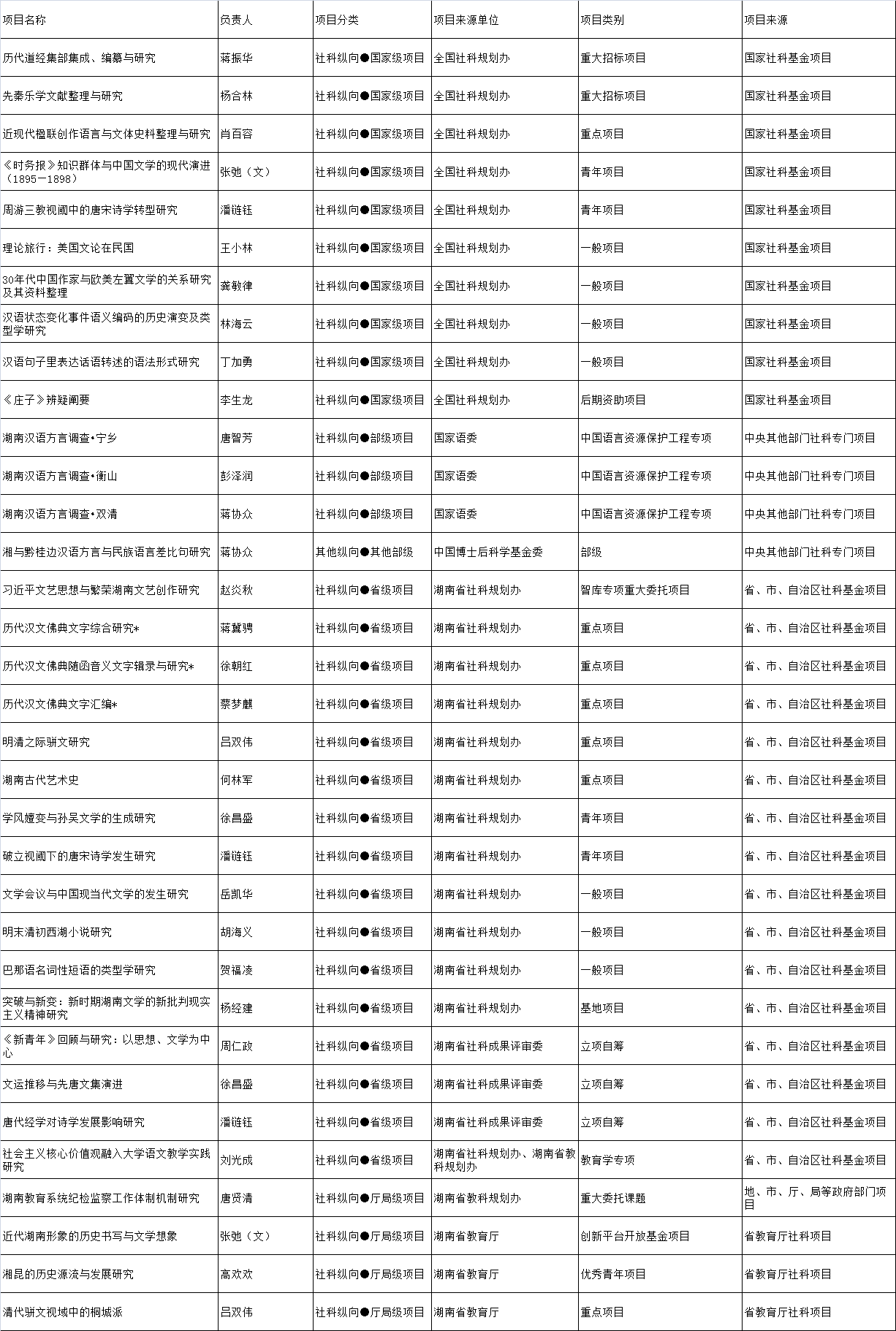 2018年科研项目立项信息一览表