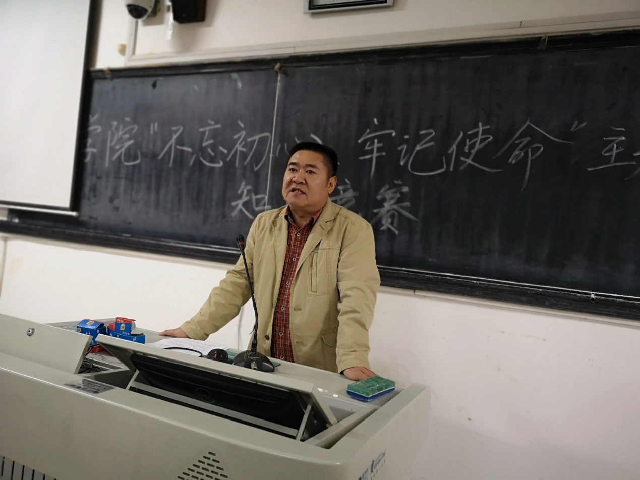 为深入学习贯彻习近平新时代中国特色社会主义思想,检验学习效果,真正达到理论学习有收获的目标,进一步推动主题教育深入开展,2019年11月13日晚7点,学院在文渊楼316教室举行“不忘初心、牢记使命”主题教育理论知识竞赛,院党委办主任夏云飞、院学工办主任周灿担任监考,院党委书记李伶俐、副书记熊剑峰到场巡考。