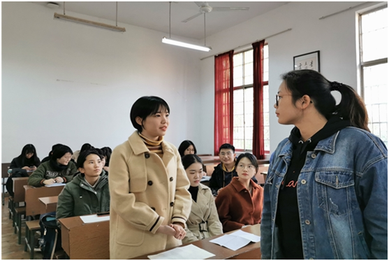 李旷怡介绍会议流程,宣读支部拟发展对象及转正名单。预备党员接收大会由发展对象自我阐述开始,他们围绕个人基本情况、学习成绩、获奖情况等进行了个人简介。在党员向发展对象提问环节,当问到共产党人的初心和使命时,发展对象谢本洁回答到:“共产党人不能忘记自己的初心和使命,应当时刻牢记为中国人民谋幸福,为中华民族谋复兴。”