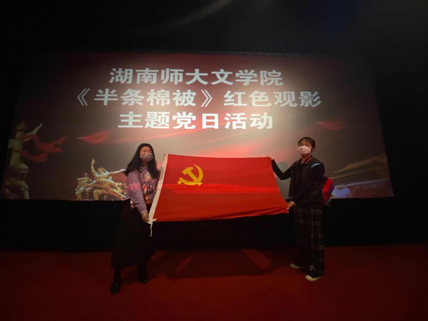 2020年10月22日下午,文学院组织学院全体教职工到通程亿鑫电影院集中观看电影《半条棉被》,学生党支部委员全体参加。