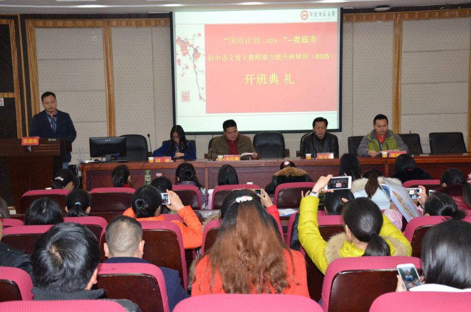(通讯员廖加丰)11月29日上午,娄底市初中语文骨干教师能力提升研修班开班典礼在文学院216学术报告厅举行。文学院党委书记李伶俐,副院长彭万福,副教授周敏,研修班班主任廖加丰等出席开班典礼。开班典礼由文学院成教办主任张德强主持。