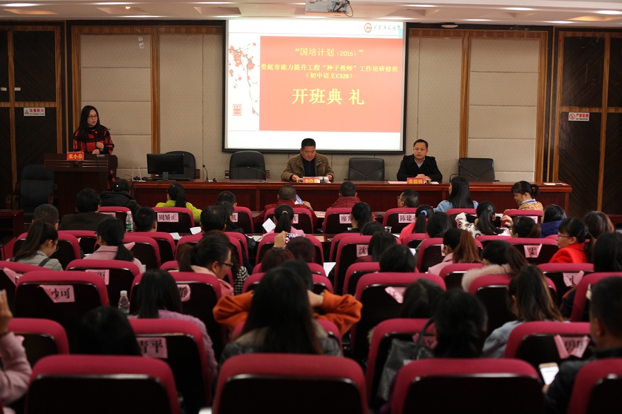 (通讯员 胡媛媛 冷雅妮)11月10日上午,娄底市能力提升工程“种子教师”工作坊研修班开班典礼在文学院216报告厅举行。文学院党委书记李伶俐,副教授周敏,成教办主任张德强出席了此次开班典礼,主持人由学工办主任张小春担任。