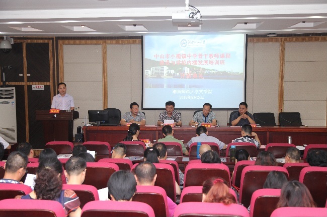 2016年8月24日上午8时整,来自中山市小榄镇五个学校的59名老师,在文学院216学术报告厅举行中山市小榄镇中学骨干教师课程建设与学校内涵发展培训班开班典礼。中山市小榄镇一中副校长陈华梁、菊中副校长陈清茂、侨中教导主任宗健、二中办公室主任陶烨、永中德肓主任梁红华,湖南师范大学继续学院院长、博士生导师马卫平教授,副院长吴跃飞,文学院副院长彭万福出席开班典礼。典礼由湖南师范大学文学院成教办主任张德强主持。