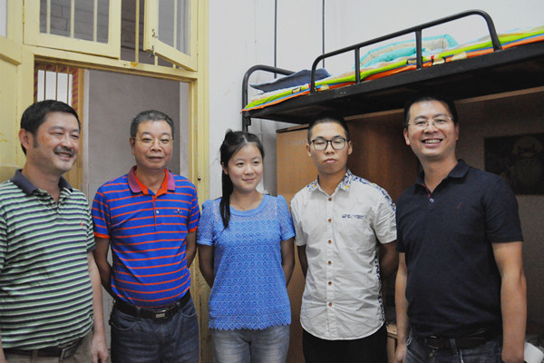 其后,周俊武等人造访文学院男生寝室,新生与家长们对领导的造访表示感谢。通过融洽的交流,周俊武等人了解到一位新生与其姐姐都是师从汉语言文学专业,姐姐来自14级汉语言二班,在本部校区学习生活,此次是陪同弟弟来报道。其后周俊武、何旭娟与文学院领导等人与该姐弟合影留恋,并叮嘱其他学生要尽早进入学习状态,适应大学生活。