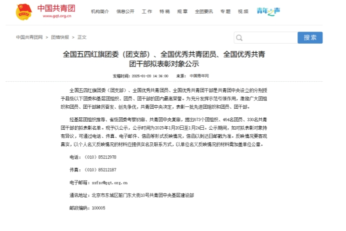 (通讯员丛杨)在乙巳蛇年春节即将到来之际,共青团中央发布了“全国五四红旗团委(团支部)、全国优秀共青团员、全国优秀共青团干部拟表彰对象公示”,我院团委荣获“全国五四红旗团支部(总支)”表彰。