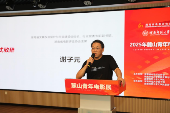 湖南省电影评论协会主席、湖南省文联权益保护与行业建设处处长、行业党委专职副书记谢子元出席开幕式,并宣布影展开幕。