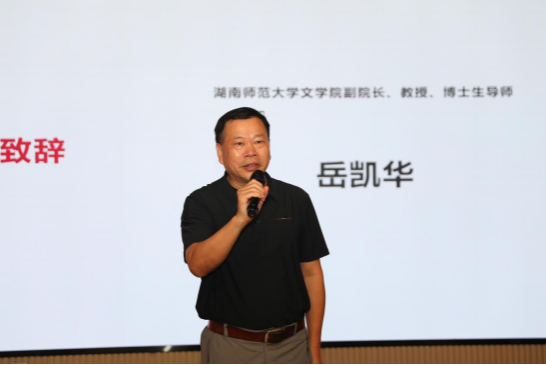 湖南师范大学文学院戏剧影视文学系主任胡海义教授在开幕式致辞中介绍到湖南师范大学戏剧影视文学专业的发展历史可追溯至1938年,历经多年发展已形成本科、硕士、博士的完整培养体系,2022年专业获评国家级一流本科专业,专业注重理论与实践相结合,借影展平台展示学生作品以促进人才成长,期待未来涌现更多优秀作品并提升学科影响力。