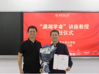 (通讯员陈易甜)6月12日下午,文学院在213教室举行范志忠“潇湘学者”讲座教授聘任仪式。文学院党委书记熊剑峰、副院长岳凯华、戏剧与影视文学系系主任胡海义及戏剧与影视文学系部分教师参加仪式。