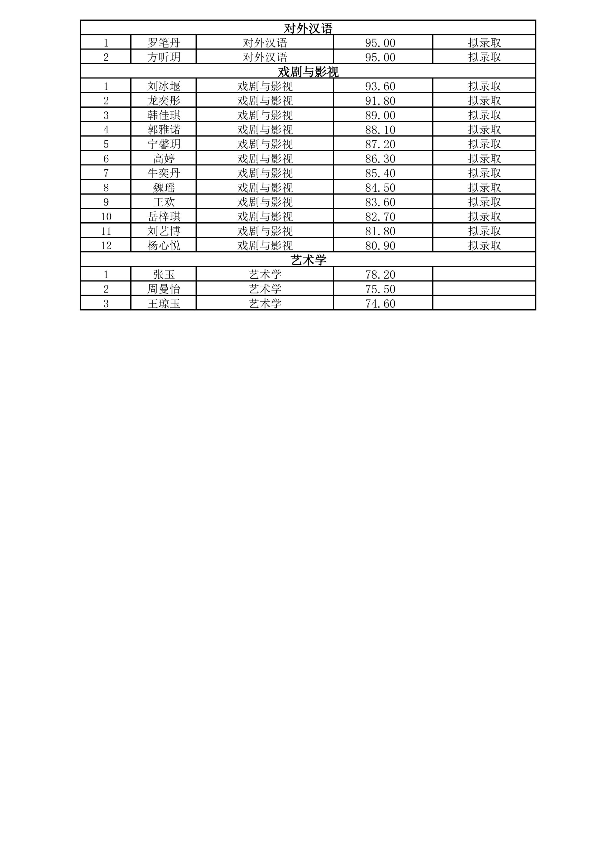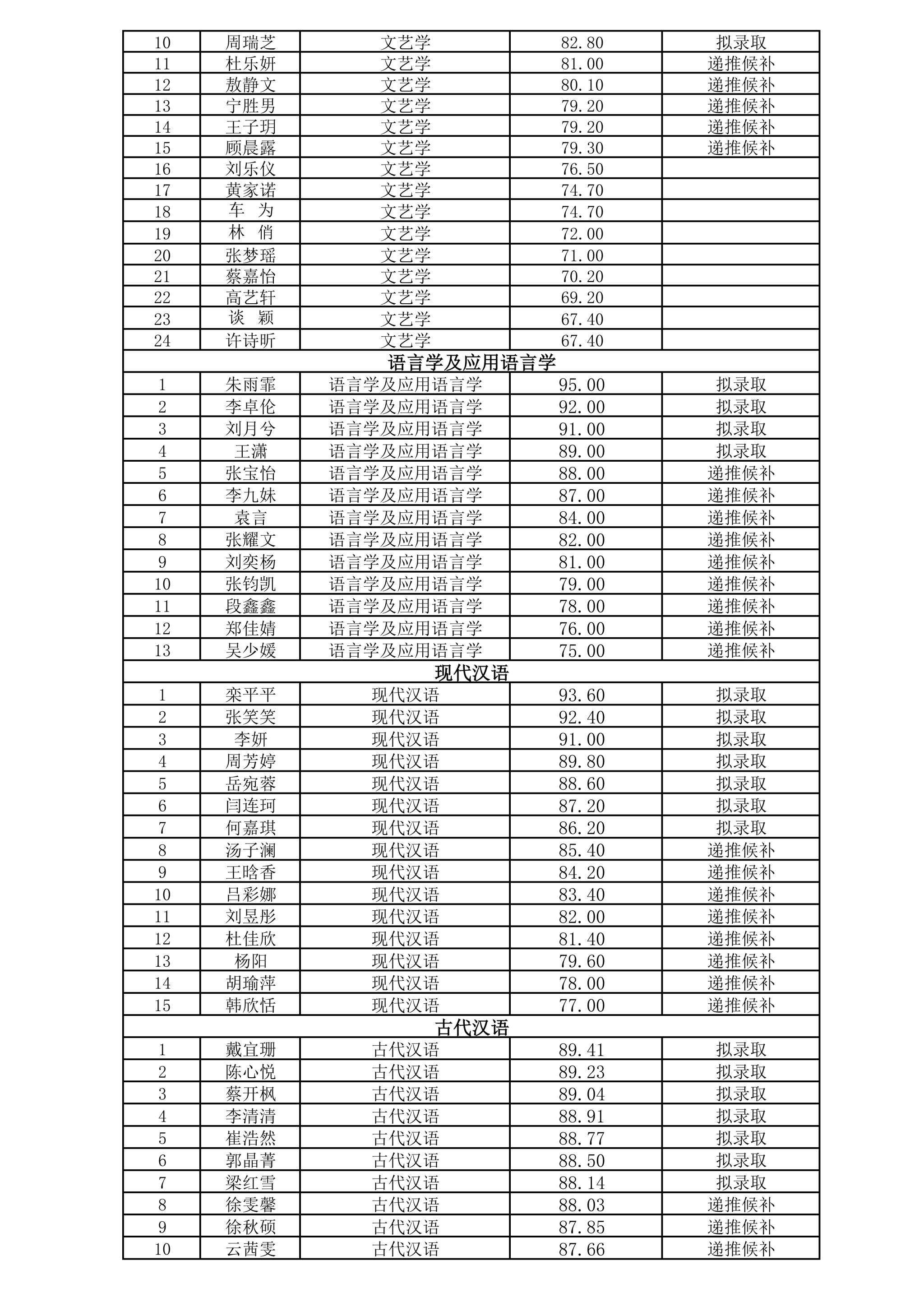 2026年文学院推免面试成绩公示
