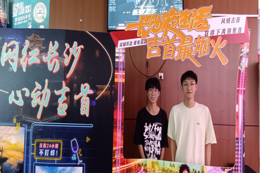 映前,文学院学子在互动装置处,手持KT板打卡拍照,并配合ID录制。“你要哦该咯,你又要哦该咯,你到底要哦该咯……”一声声极具代表性的长沙话营造出浓厚的观影氛围。活动负责人熊军聚焦汉语言文学专业和戏剧影视专业发表讲话。他强调《长沙夜生活》是首部“长沙领衔主演”的电影。该片猫眼、豆瓣开分9.3分,相关话题总流量超10亿,微信阅读总量53万+,位居五一电影档19部影片口碑榜首。映后互动交流环节,文学院21级学生代表黄维评论:“影片立意鲜明,制作精美,展示了长沙独具特色的人文之美、生活之美。从五一广场到太平老街,再到岳麓书院,这座城市的温度和包容度在我心中扎根。”我校文艺写作教工联合党支部书记、文艺理论教研室讲师文浩表示:“《长沙夜生活》,一部被简单命名耽误的好电影。长沙韵味,生活滋味,人生况味,值得品味!”