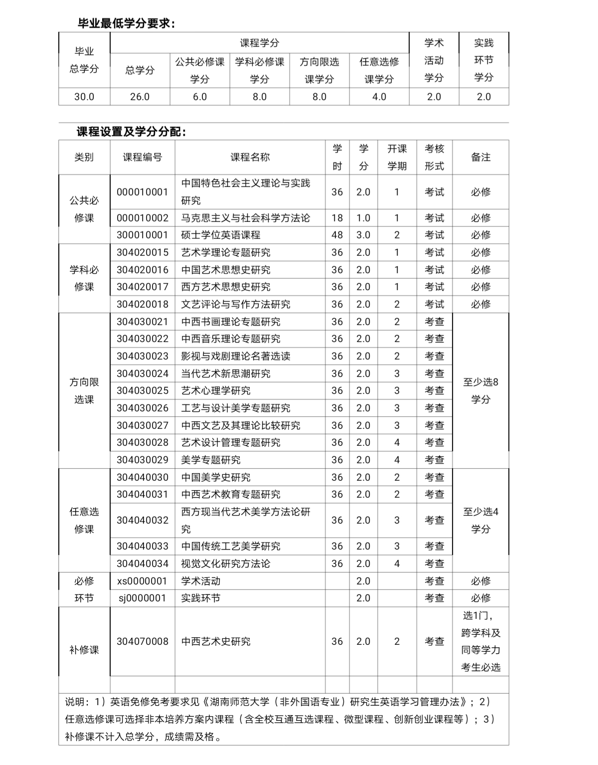 湖南师范大学学术型硕士研究生培养方案(2017年版)学科名称:艺术学理论(学科代码:130100)