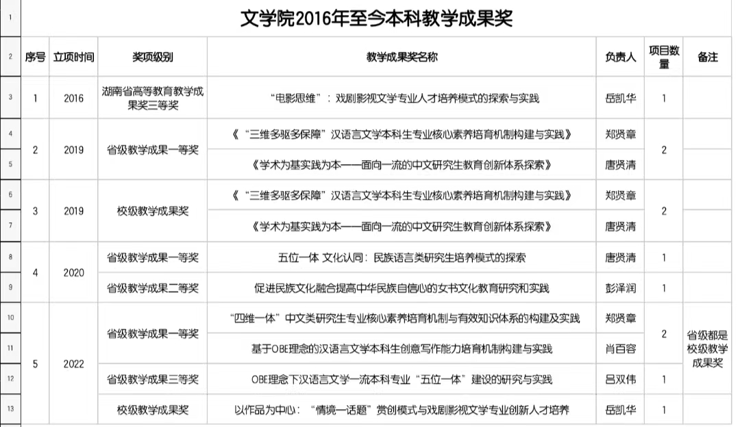 文学院2016年至今本科教学成果奖