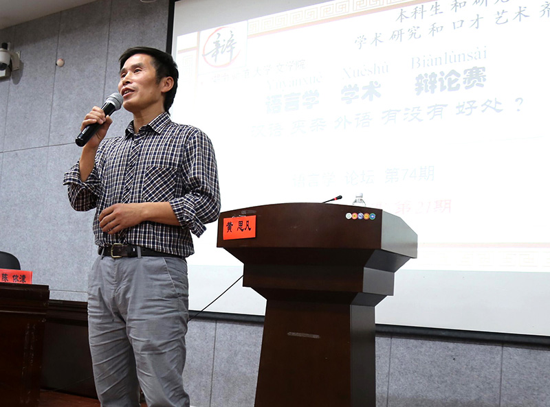 (通讯员 张婷 向丽君)2017年11月9日晚,由文学院研究生会与研究生团委主办的语言学论坛第74期,语言学辩论赛第21期,在文学院217教室举行。博士生导师蔡梦麒、教授彭泽润教授、博士生张倩等担任评委。