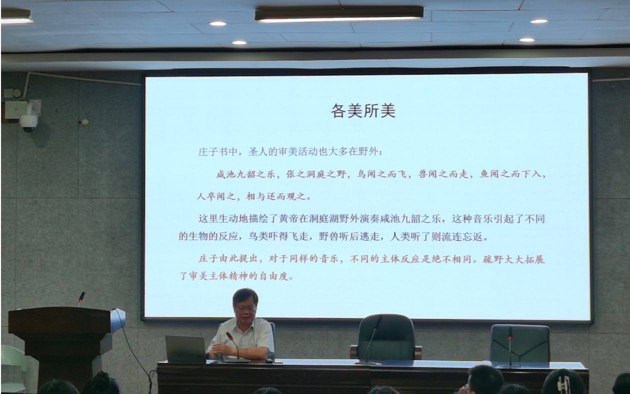 (通讯员方平)9月23日下午三点,中国人民大学杰出学者特聘教授袁济喜老师莅临文学院,在217教室作了题为“疏野与诗学”的精彩讲座。这是文学院“智慧之光”学术名师系列讲座中的又一次学术思想盛宴。本次讲座由汤凌云教授主持,中南大学毛宣国教授,本院周泽东副教授、文浩副教授、牟方磊老师等多名教师和硕博士生参加。