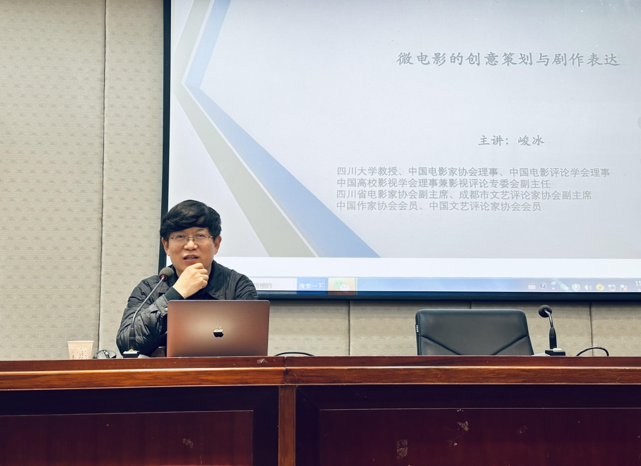 (通讯员曹颖)3月8日下午,四川大学教授、四川电影家协会副主席、中国电影家协会理事曹峻冰在湖南师范大学文学院216教室主讲了一场“微电影的创意策划与剧作表达”讲座。讲座由文学院副院长岳凯华教授主持,戏剧影视文学系主任胡海义教授、教研室主任曾小明副教授和黄茵、高欢欢、李婕等老师出席,我院部分戏剧影视文学专业本科生与电影专业研究生聆听了讲座。全场座无虚席,受益匪浅。