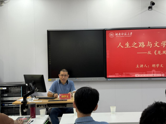(通讯员李晨玮)5月16日下午,江苏省作家协会副主席、鲁迅文学奖得主胡学文携新作《龙凤歌》做客文学院“智慧之光”学术名师系列讲座,围绕“人生之路与文学写作”与在场师生展开交流。讲座由李作霖副教授主持,文学院教师郑朋、胡海义、许永宁出席。