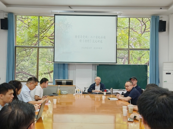 (通讯员王全)5月27日上午,河北师范大学教授、中国诗经学会会长、中国古代文学理论学会副会长王长华教授应邀在湖南师范大学文学院古代文学教研室开展题为“转型与突破:二十世纪后期的《诗经》文化研究”的专题讲座。本次讲座由曾绍皇教授主持,蒋振华教授、陈松青教授、吕双伟教授、谢雨情老师、闫梦涵老师、王珂老师及古代文学、古典文献学专业的三十余名研究生参加。