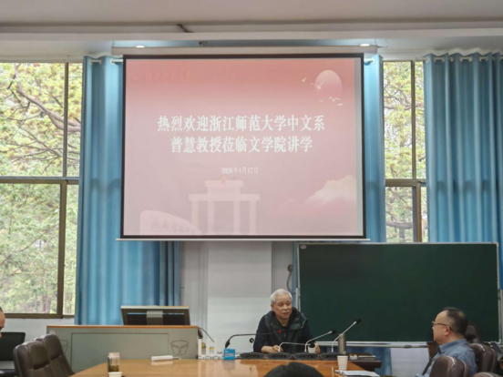 (通讯员王全)4月17日下午,浙江师范大学教授,长江学者特聘教授、国务院学位委员会学科评议组委员普慧教授应邀在湖南师范大学文学院开展“AI时代,文学史书写所留下的诸多问题再探讨”的专题讲座。本次讲座由曾绍皇教授主持,古代文学、古典文献学专业的三十余名研究生参加。