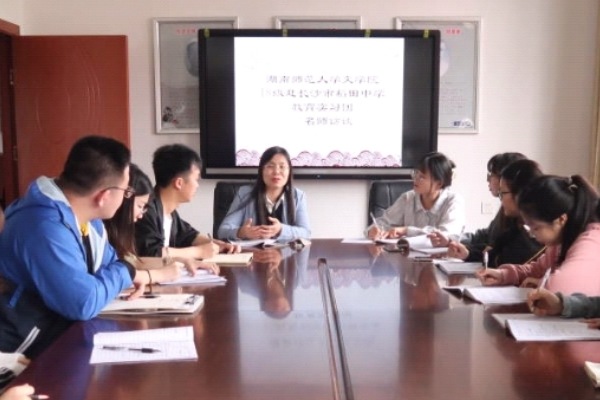 (通讯员 徐洁)为促进实习队员与所在实习学校教师之间的进一步交流,以解决实习队员在教学和班级管理工作中产生的困惑,4月23日下午,我院2018级赴稻田中学实习队于开慧楼五楼教师发展中心开展名师访谈教育活动。此次活动由实习队长侯文静全程组织并主持,稻田中学高中语文教研组组长唐云、高中年级主任蒋晓恒应邀作教育教学分享,全体实习队员参加。