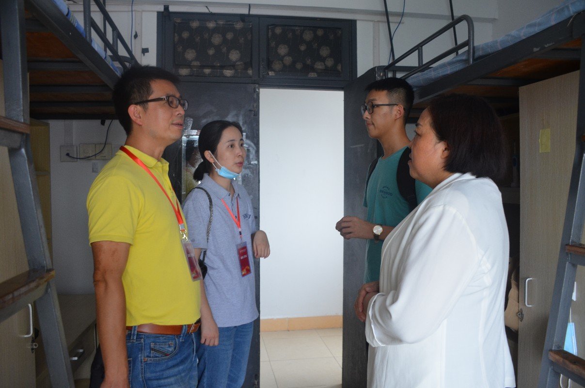 9月11日上午,我院党委书记李伶俐、党委副书记熊剑峰、宿舍管理中心主任张晓春及我院学工办老师来到江边一舍,仔细观察宿舍情况,排查宿舍硬件使用情况,就解决学生困难进行了深入交流。11日下午,熊剑峰和学工办老师前往江边一舍和天马宿舍,同新生们进行了亲切的交谈,询问新生到校第一天生活情况与感受。熊剑峰叮嘱新生要尽快完成从中学到大学的转型,以最快的速度适应大学坏境。同时,他提醒新生在进入大学之后要注意人身安全和财产安全,预防校园欺诈。