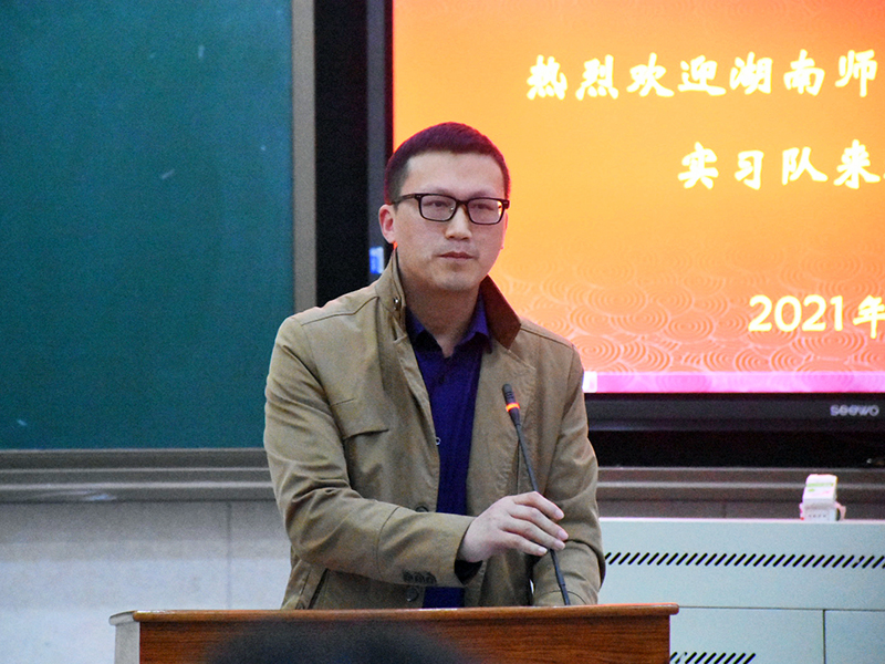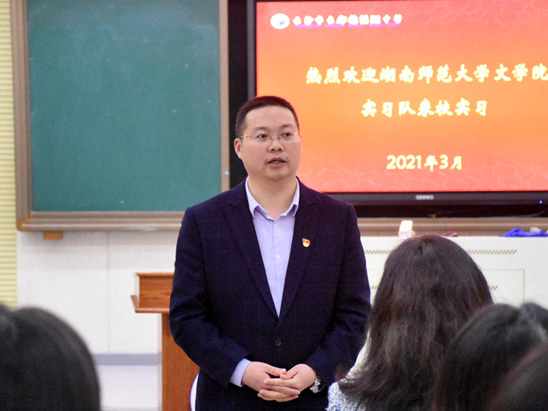 王旭代表长郡梅溪湖中学对我院实习队的到来表示欢迎,并指出长郡梅溪湖中学是一所办学实力强、教学理念先进的公立完全中学,建校以来在各项工作上都取得了可喜的成绩和突破。他结合自身从教经历,鼓励实习队队员在教师工作岗位的大舞台、大讲台、大课堂上,以成长为具备充分思想准备、深厚理论功底和高超实操策略的教师为目标,加深实践,知行合一;大家要保持敬畏之心,真心爱待学生,尊重每一个学生作为独特的生命个体;以谦虚谨慎、积极进取的心态,理解教育的社会责任所在,在专业上有所收获。