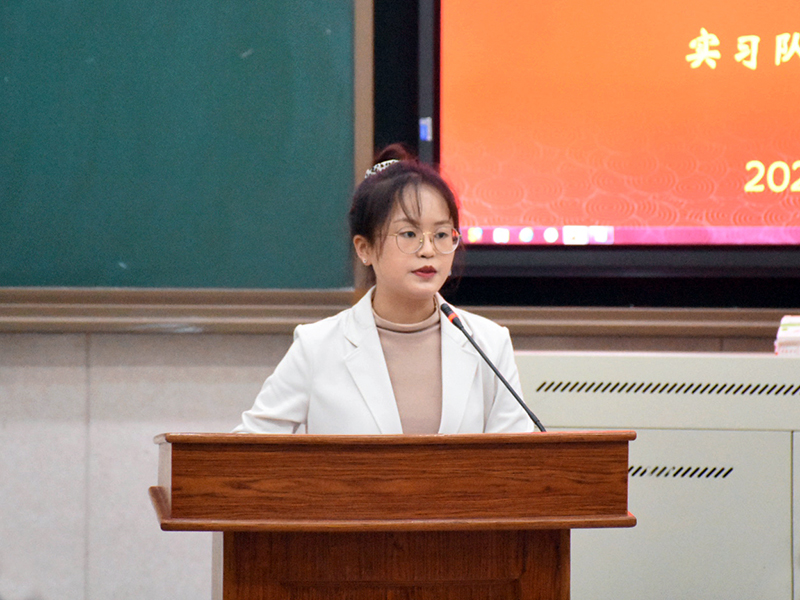 何永清就实习要求、班级管理、教学工作做出了详细说明与安排,强调要“服从、守纪、安全”。实习队队长王静发言,代表全体队员作出承诺。