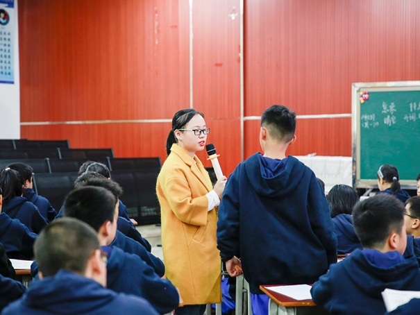 本次公开课上,杨翼飞选取初一语文教材《秋词〈其一〉》《夜雨寄北》两首诗歌为主讲篇目,以诗歌意象为切入点进行古诗教学,向学生展示了诗歌独特的美。课上初一1903班同学积极配合,思维开阔,课堂氛围活泼热烈。