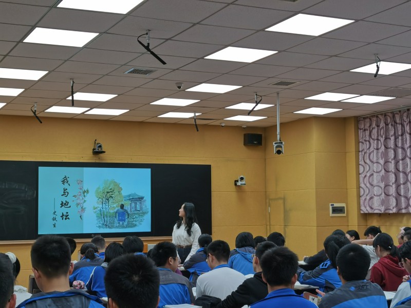 在评课环节,周雯首先讲述了自己的教学设计理念和收获,并对备课期间各位指导老师提供的帮助表示了感谢。蒋飞腾老师以“雏凤清于老凤声”这一比喻,对周雯给予了极高的评价,充分肯定了周雯的师范技能及课堂表现力。随后学校实习工作检查组专家们高度赞扬了周雯的汇报课,并进行了精彩的点评。